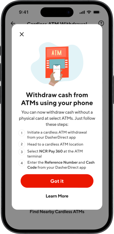Without a physical card, Dashers have no official way to withdraw cash. This limitation often leads to drop-off, support tickets, or reliance on workarounds. By enabling cardless ATM withdrawals, we created a more dependable path to access funds and strengthened the overall trust in DasherDirect.